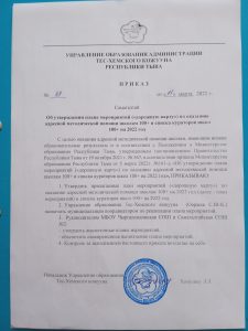 В соответствии с приказами Министерства образования Республики Тыва №1263-д от 16 ноября 2021 года «Об утверждении пана-графика («дорожной карты») по повышению качества образования в школах с низкими результатами обучения и школах, функционирующих в неблагоприятных социальных условиях на 2022 год»; приказа №161-д от 05 марта 2022 года «Об утверждении плана мероприятий («дорожную карту») по оказании адресной методической помощи школам 100+ и списка кураторов школ 100+ на 2002 год» и приказа Управления образования от 11 марта 2022 года №48 «Об утверждении плана мероприятий (2дорожную карту») по оказанию адресной методической помощи школам 100+ и списка кураторов школ 100+ на 2022 год» оказана адресная методическая помощь методистами Управления образования.